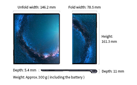 - Huawei Mate X Weight is approximately 300 g